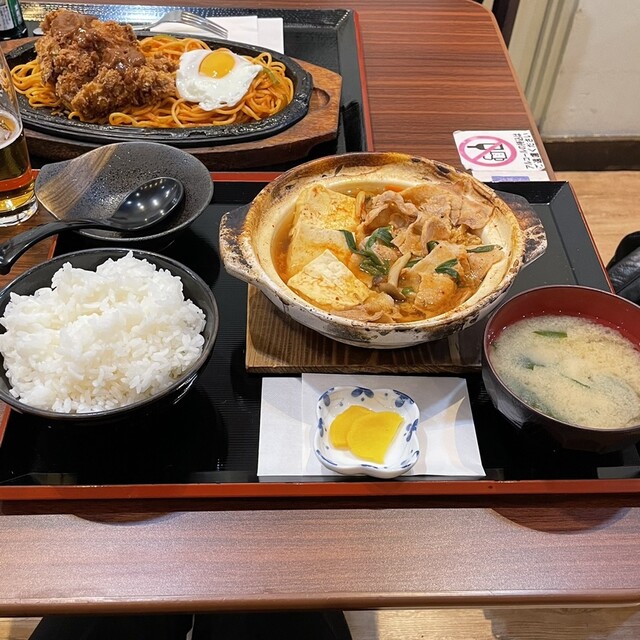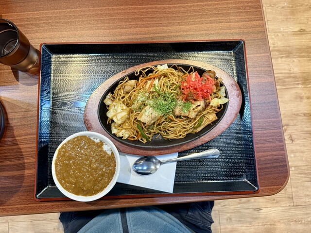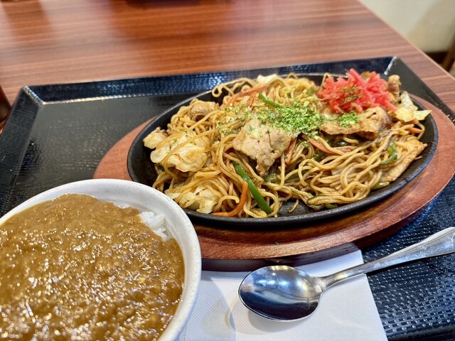 「鉄板ソース焼きそば」と「ミニカレー丼」のセット、¥880+¥300 焼きそばは、熱々の鉄板でジュージューと焼かれながら登場。 ソースの焼ける匂いが食欲をそそります。 食べて... 詳細を見る