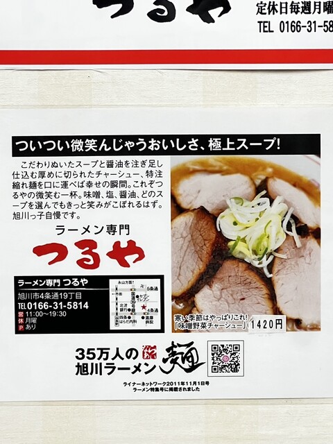 平日のお昼に、旭川で3代続くラーメン屋 つるやさんに行って来ました。いつも通り、1人車で訪問です。