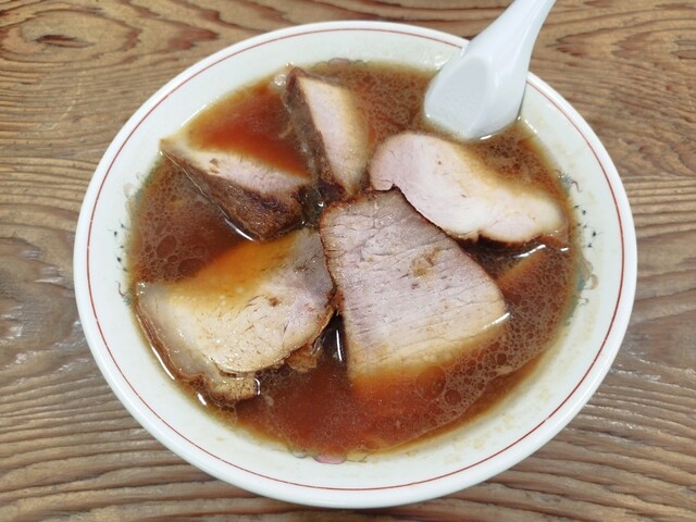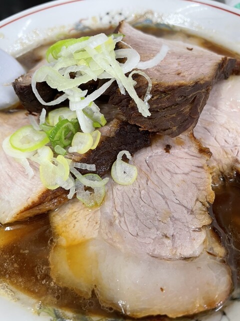 このチャーシューはトロトロ系ではなく、歯応えがあるハードタイプ、...