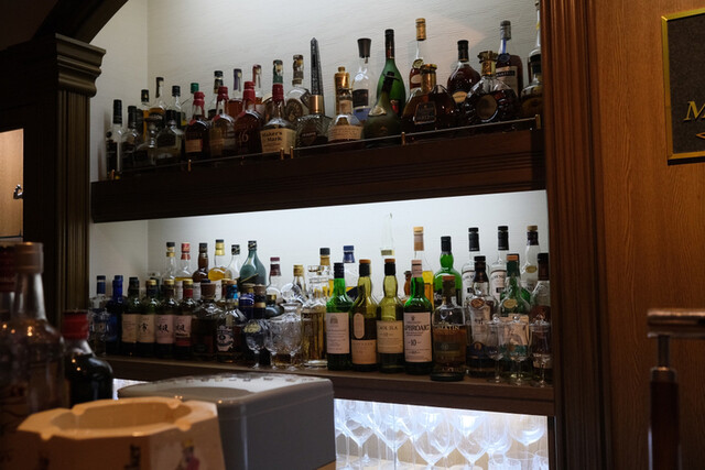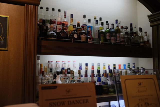 バーは暗めで落ち着いた雰囲気で、ジャズが静かに流れていました。目の前のバックバーにはボトルが目算200本ほど陳列されていました。