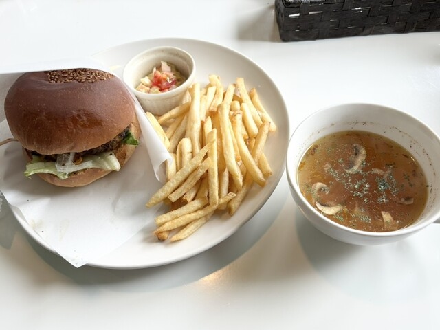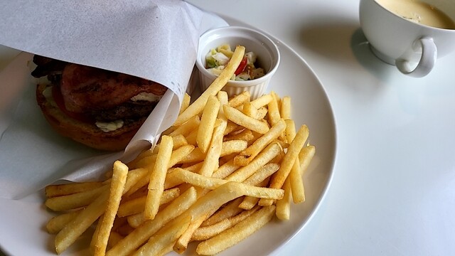 「クラップス ランチA (チーズバーガー、コールスロー、フライドポテト、スープ付き)」¥1,080 ファーストフードじゃない所でハンバーガーが食べたくて来ました。開店時間から... 詳細を見る