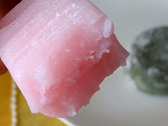ケース内には3種ほどの商品しか残ってませんので「すあま@140」と「桜餅@160」をひとつづつ購入