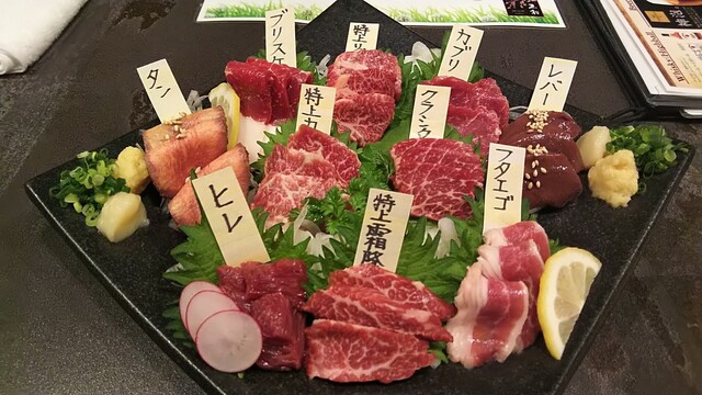 今回は馬肉の3種盛りや山わさびをかけたものをいただきましたが、どちらもとても美味しかったです(´∇`)