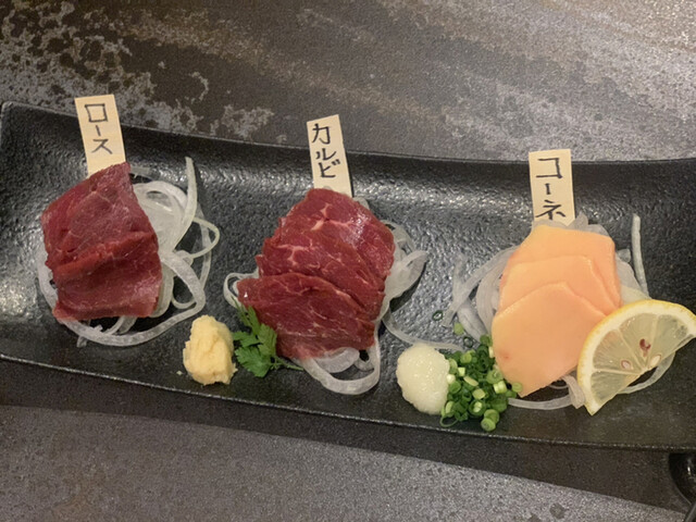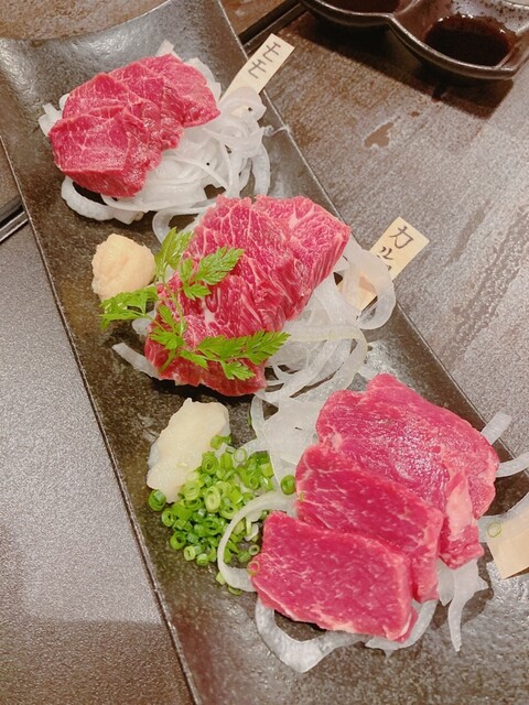 呑み会の二次会として初訪問をしてきました こちらのお店は馬肉料理の専門店になりますが、馬肉の色々な部位を提供していただけるので選ぶ楽しみが有ります 今回は馬肉の3種盛り... 詳細を見る