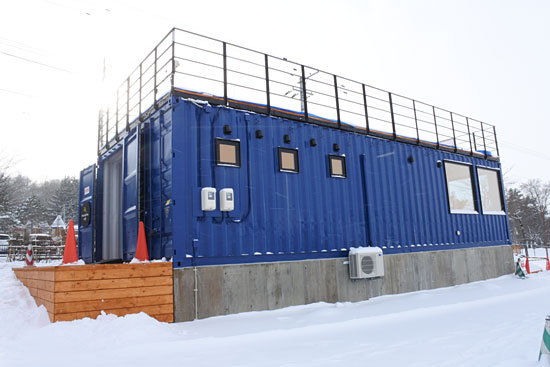 コンテナですが中は大きな窓がありとても開放的で明るく、トイレも身障者用まであってすごいなと思いました。