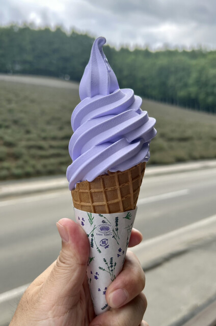 活火山十勝岳が煙を上げているのを見ながらソフトクリームいただきました
