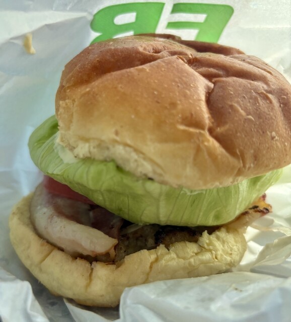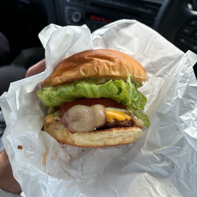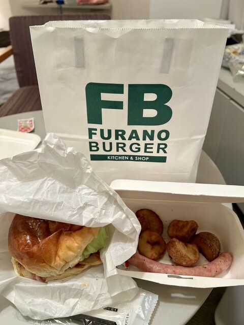 やっと行けました!富良野の大人気ハンバーガー富良野旅の〆はフラノバーガーさん!大人気でいつも混んでて初訪問。この時も1時間以上待つと言われました。富良野の開けた場所に佇んでいるハンバーガー屋さんでテイクアウトのみ。