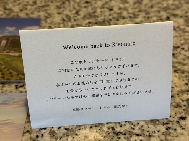 リゾナーレ何回も利用してる人には部屋に置いてあります。雲の形の美味しいマドレーヌでしたよ。