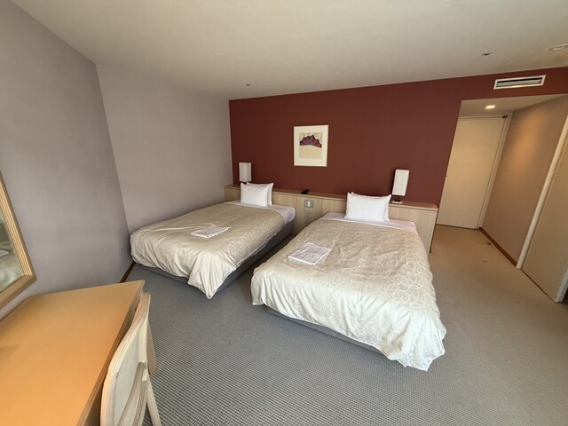 縦長のホテルなので一つのフロアに部屋が4つくらいしかなかった。ツインの部屋のところは違うかも。