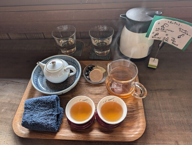 席につくと、一杯ずつ淹れる中国茶の香りがふわりと漂い、甕で寝かせた天然水の...