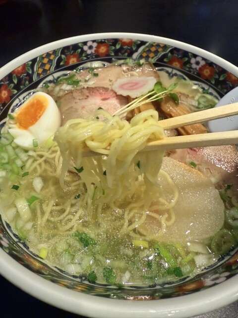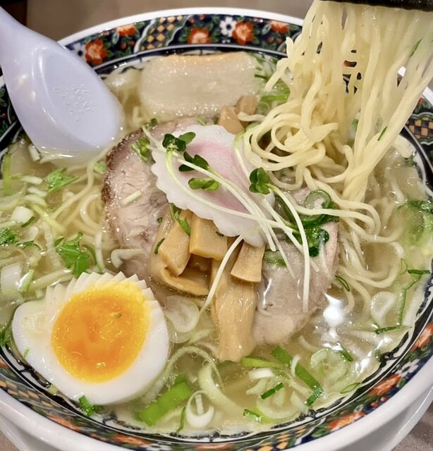何度も函館に行っているのですが、初めて訪問。平日14時頃ですが、10人ほどの行列です。五稜郭タワー真横の立地、仕方ないですね。塩チャーシューをオーダーしましたが、スープはシンプルで最後まで飲み切れる美...