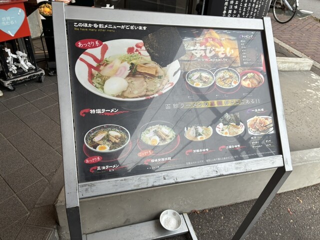 函館に来たら塩らーめんは外せないということで、五稜郭タワーの目の前にあるこちらの「あじさい本店」へ。
