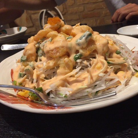 今回はエビマヨサラダにチヂミなんかも食べちゃったりして..