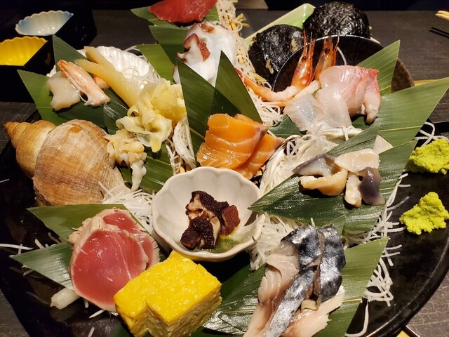 こちらで毎回印象に残るのは、存在感のある刺身盛り。