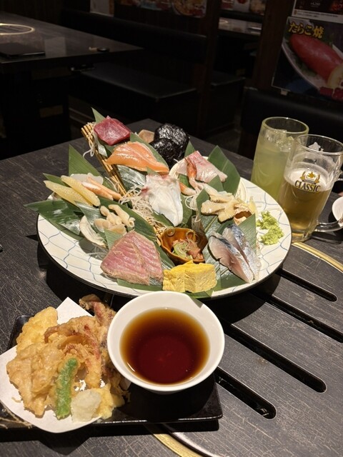 お刺身盛り合わせとイカの天ぷらが特に美味しかったです!(どちらも2人で分けてちょうど良い)