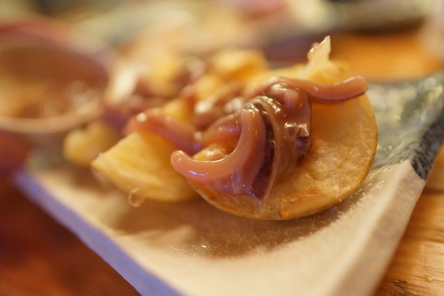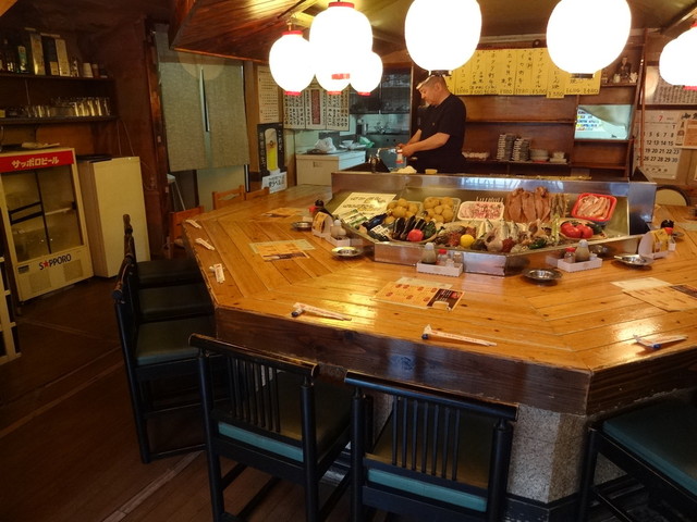 函館駅から徒歩5分のところにある老舗の居酒屋。昔から親しまれてる炉端で新鮮な食材を目の前で焼いてくれます。大きなヘラで料理を出すスタイルも愛されているうちの1つです。炉端を中心にその周りをぐるっと円型のカウンターが囲む、その雰囲気が店主とお客さん、またお客さん同士の距離感もぐっと近くなる形でお一人でも入りやすい居酒屋。