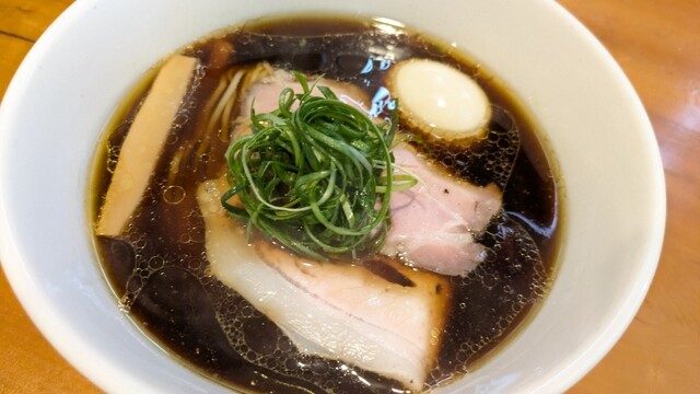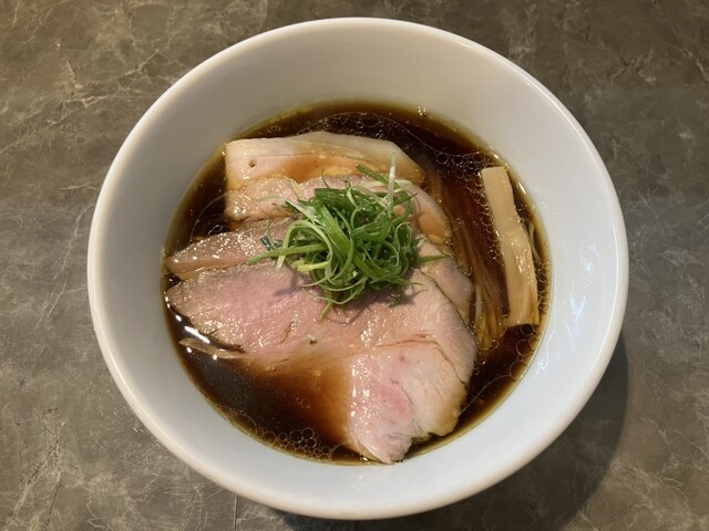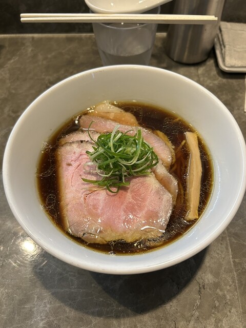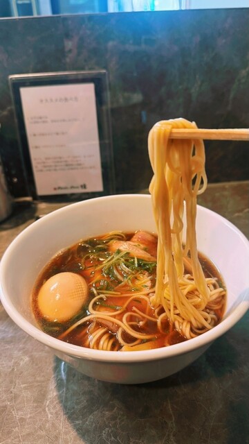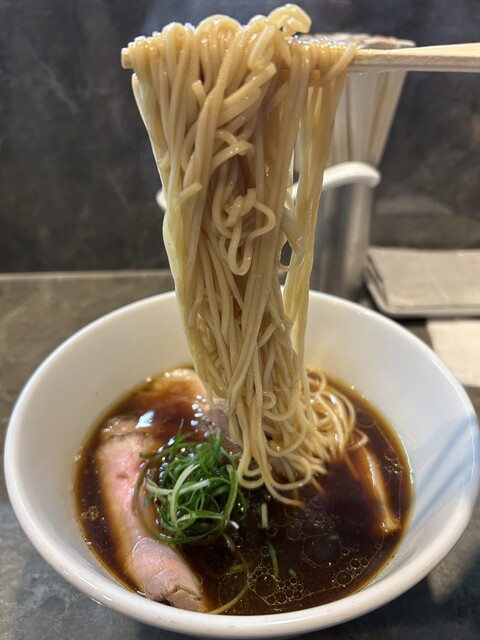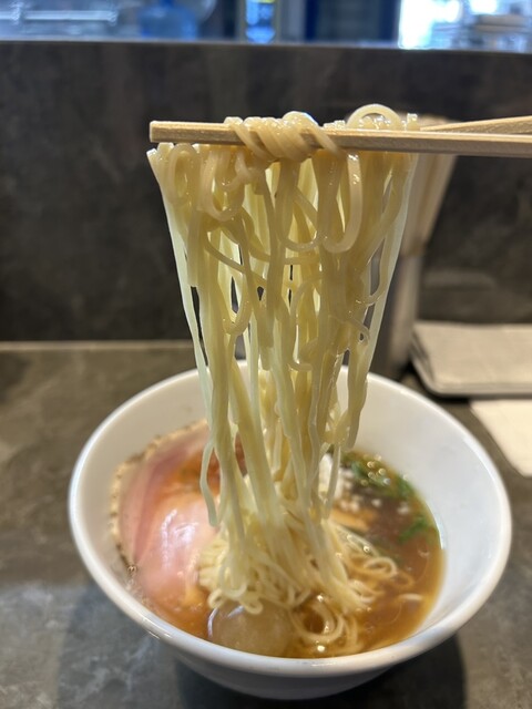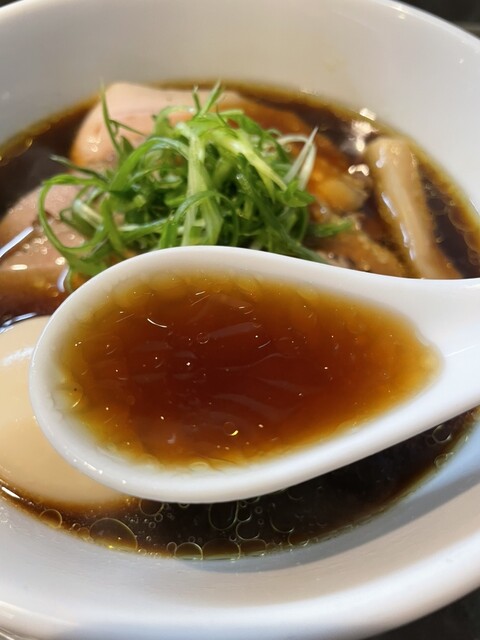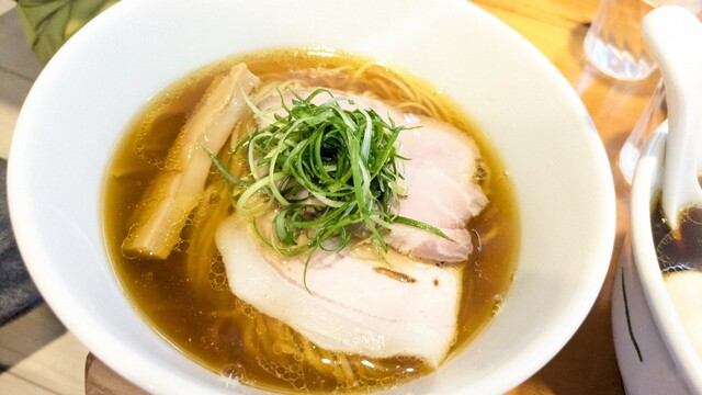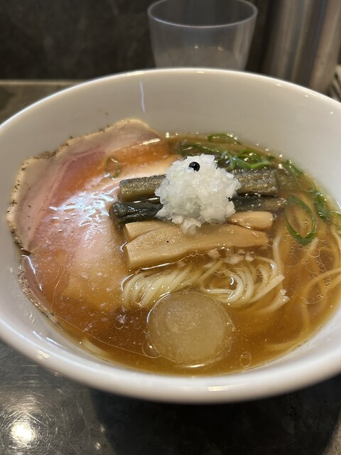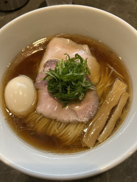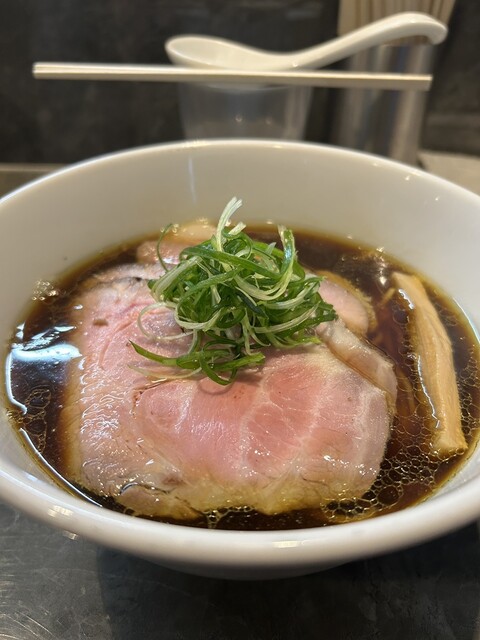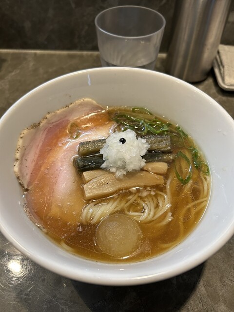 平日17:20頃訪問。17:30オープン。並びなし、他にお客さんもなし。店は綺麗で静かで、雰囲気がいい。醤油らーめんを注文。スープは美味い日本蕎麦のつゆみたい、しかもとんでもなく美味い。かなりしっかり...
