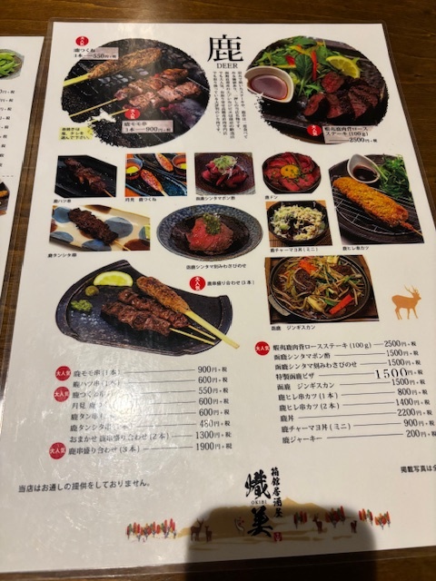 「鹿肉」がウリという居酒屋はめずらしいなとおもっており、鹿肉料理も豊富でした