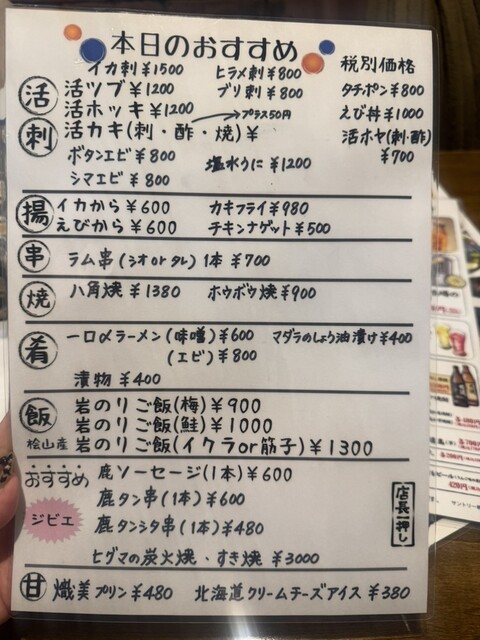 | ジャンル | 海鮮、居酒屋、ジビエ料理 |