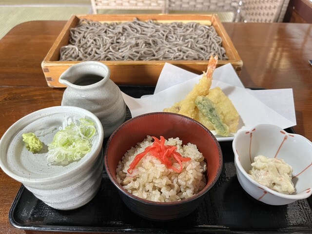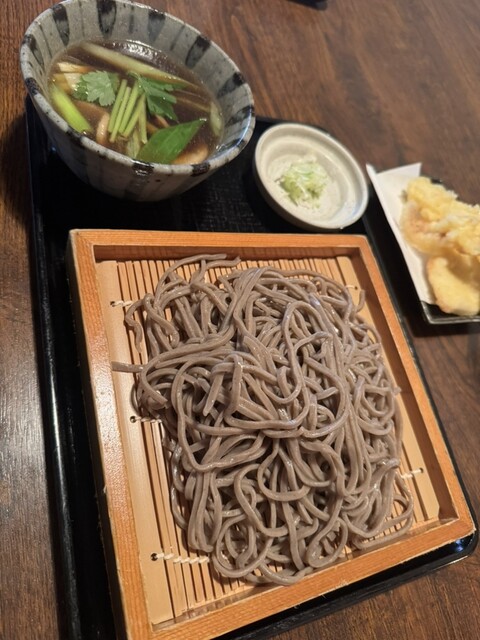 お蕎麦は田舎そば風でお蕎麦の風味高く喉越しもよき。
