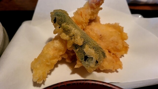 ちょっと天ぷらは、エビ、ゲソ、鶏の3種。...