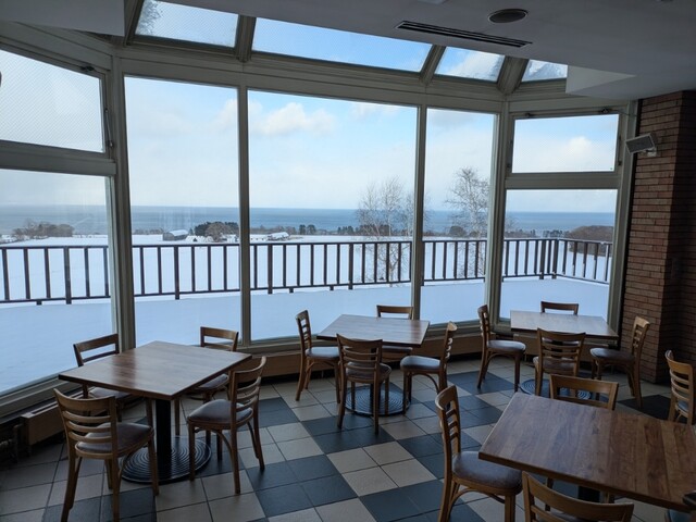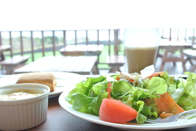 店内は開放的で広々とした明るい空間。暖かい季節にはテラス席が開放されるので、澄んだ空気と北海道らしい大自然のパノラマを堪能しながら食事をお楽しみください。