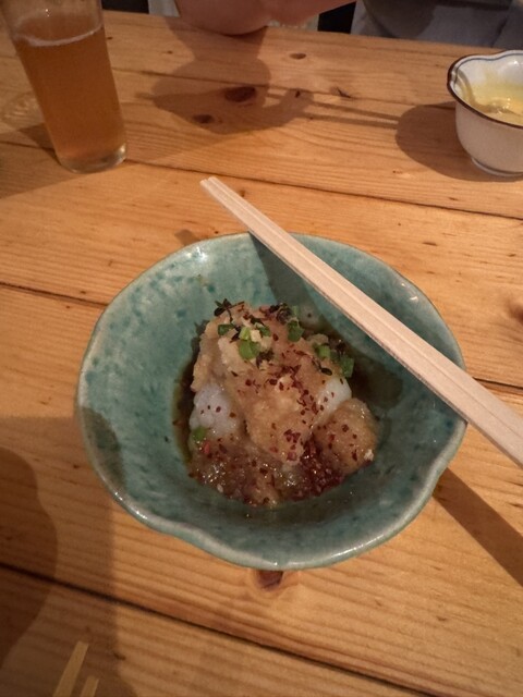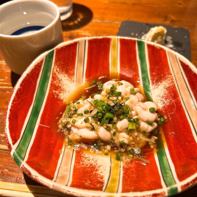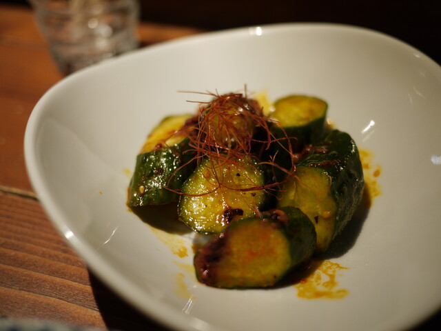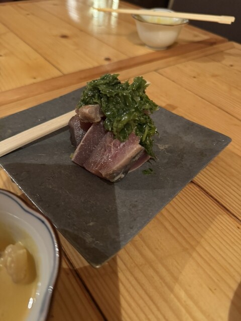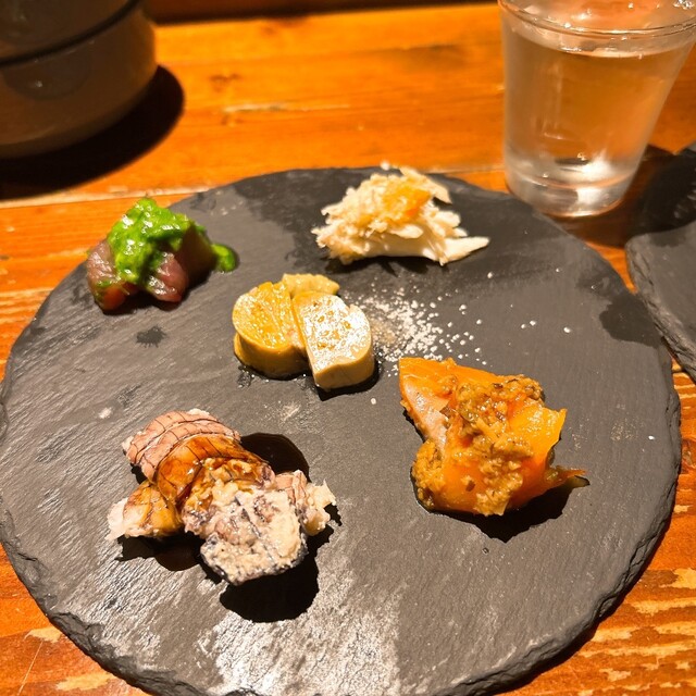 最初のお通しが出てくるまでに15分くらいかかったので、日本酒だけ目の前に置いてお預け状態でしたが、そのあとはそれほど待たずに、出てきました。