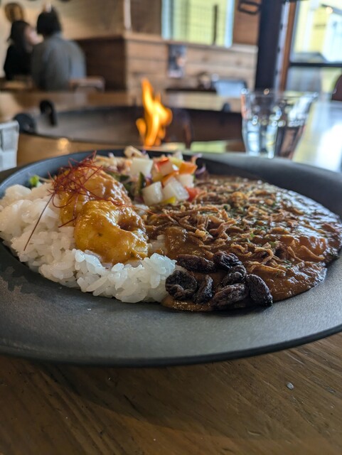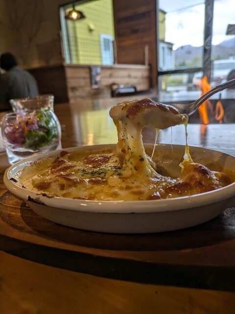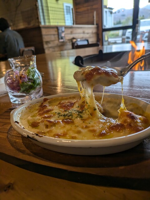 スキー帰りの冷えた体を暖めようと立ち寄った 天井の高い倉庫風の店内はウッディな内装で、中央で燃える焚火の炎と木の焼ける香りがアウトドア感を演出していてめちゃくちゃいい雰囲気 メニューには浅煎りから中浅煎りのコーヒーが幾つも並んでいて、フルーティーなコーヒーが好きな自分には願ってもないライ... 詳細を見る