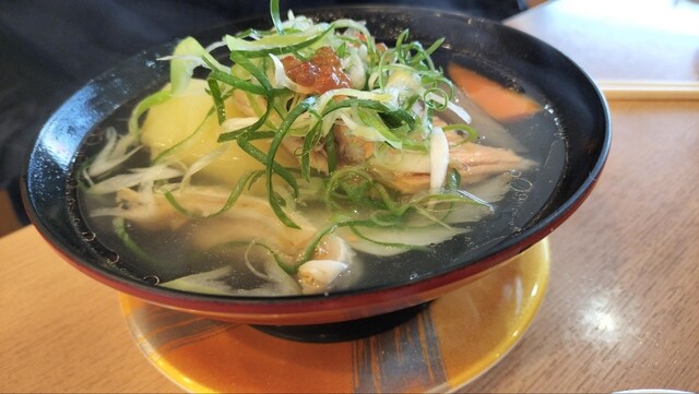 6月のお魚で気になるものを頼み、食べたことがない、三平汁を頼みました。鮭やじゃがいもが入った汁物で美味しかったです。他にはあさりとエビの頭の味噌汁がありました。