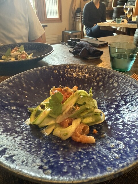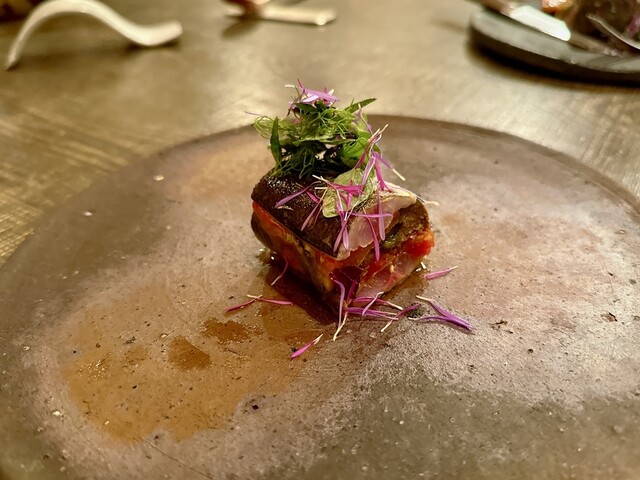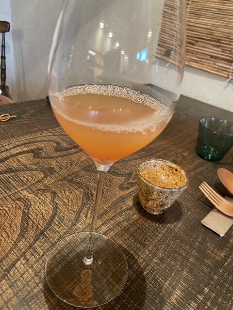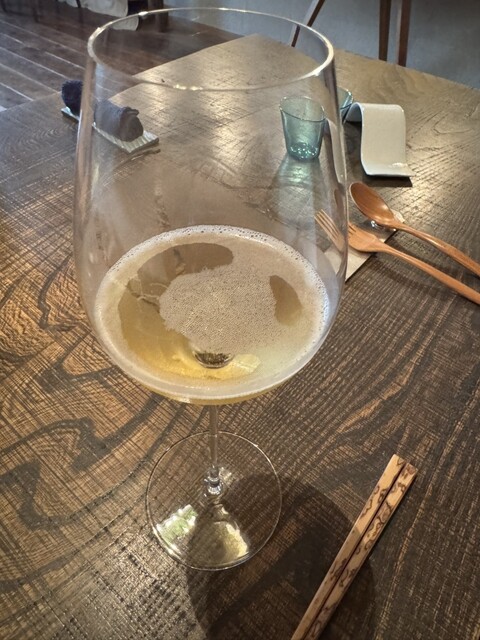 ノンアルコールペアリングにて。相方のワインも飲ませてもらったけど、ワインもおいしかったです。