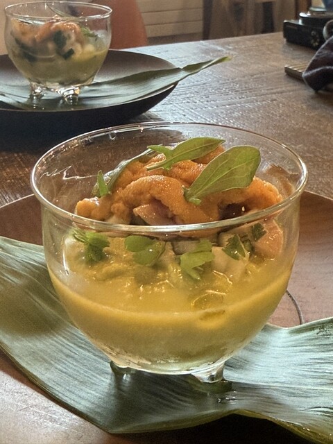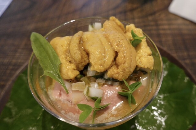 どの料理も食べたことの無い、野菜やハーブ、時期的に積丹半島周囲の色々な場所で採れた最高の雲丹や魚。小熊など堪能させていただきました。ペアリングのワインも土地のワインを中心に選択されていて、地産地消を徹...