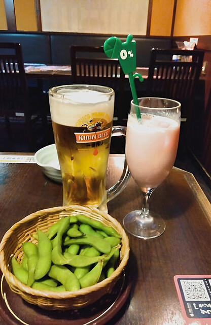 飲み放題があり(生ビール付きは +300円)、メニューも豊富で、お値段もお手頃。
