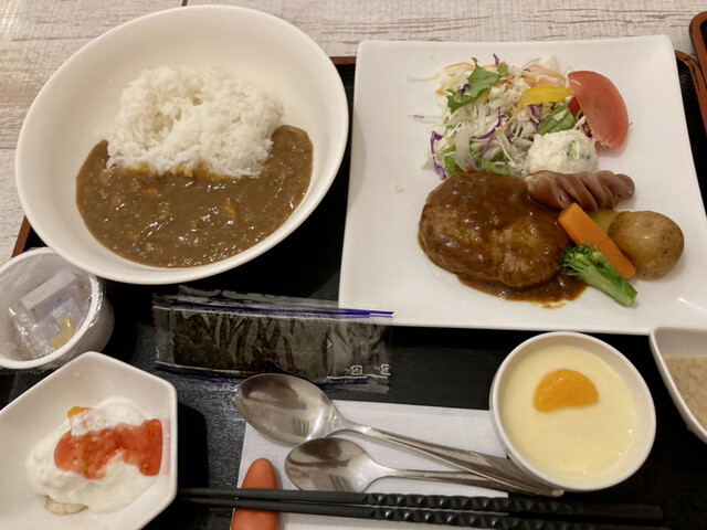 一言でいうと、朝からボリューミー。他の投稿にもあるが、お子様モーニングがカレーとハンバーグ。なのに我が子は全て完食。 なんか素晴らしい。 大人はパンもご飯もおかわり自由で小鉢も... 詳細を見る