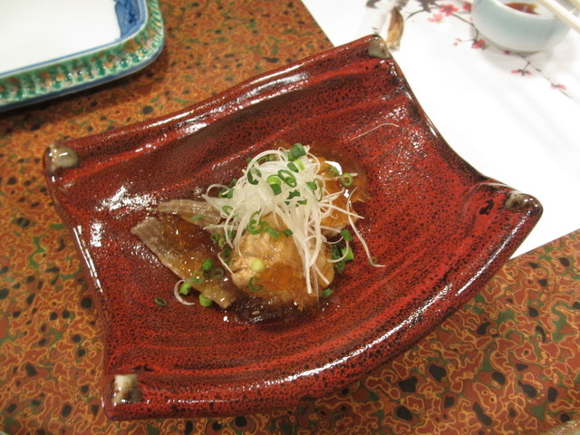 日高見、三十六人衆、お通し、豚角煮炙り焼き、ゴロゴロ餃子 4050円