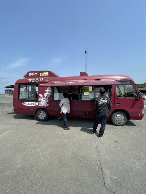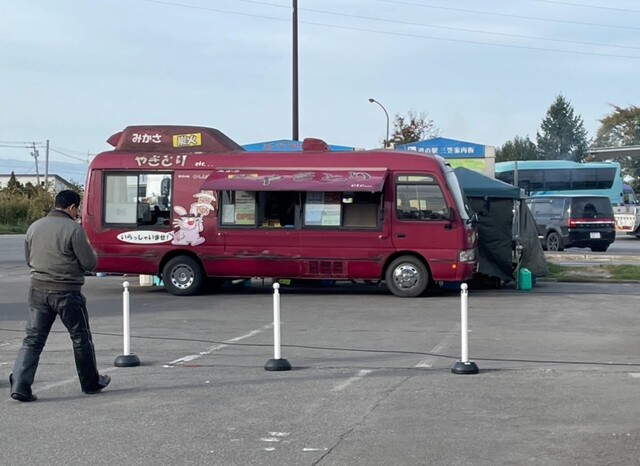 道の駅三笠駐車場にて、焼き鳥を移動販売車で販売しています。 |