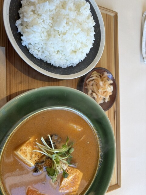 岩見沢市の幌向エリア、JR幌向駅から少し離れた住宅街の中にあるスープカレーのお店。 建物の前側に駐車スペースがあります。 前から気になっていたお店なので、旭川からの帰りにランチでお邪魔してみました。 カウンター席やテーブル席が配置されていて、落ち着いたカフェのような雰囲気の... 詳細を見る