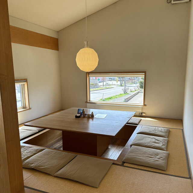 店内は木の温もりを感じる広々とした造り。座敷席もあり、5人家族でもゆったり座れるほど。人気店で、後から相席になるほどの賑わいでした。
