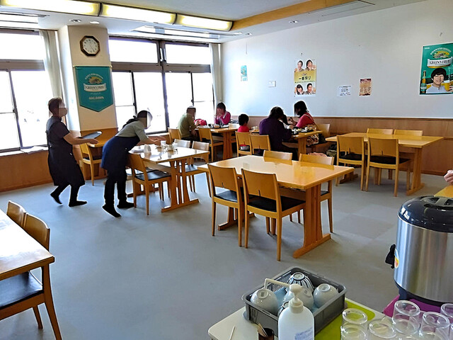 特盛の御飯...厨房の母さんが丼ご飯をヘラを水平にして押し詰めてますよw
