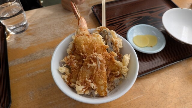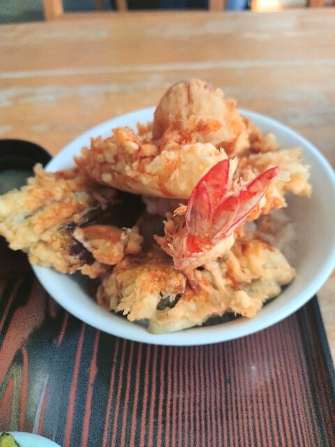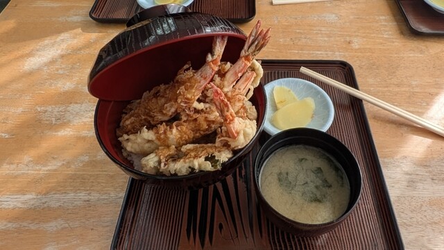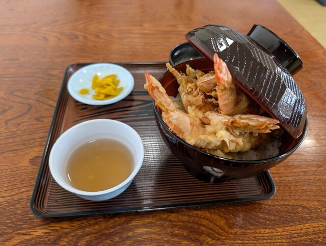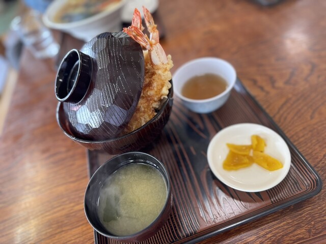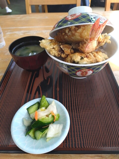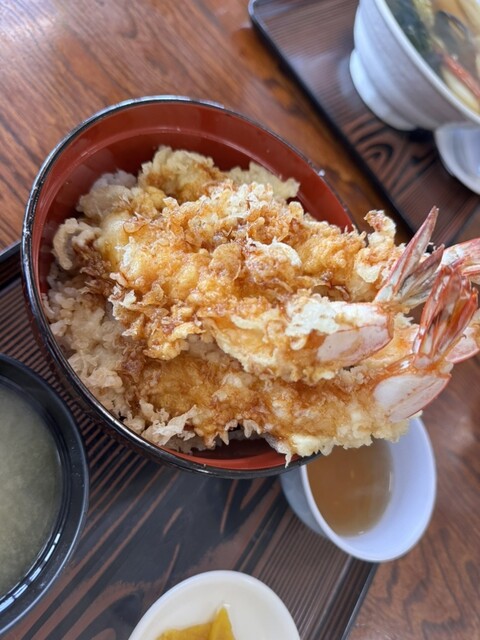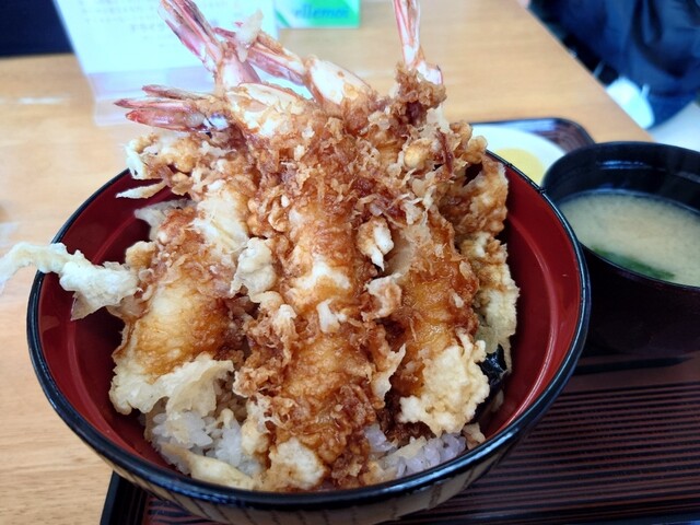 嫁様と嫁様のママさんとランチ訪問。 この界隈ではかなり人気ドライブイン食堂。 自分は限定のエビ天丼を、嫁様はカツ丼、ママさんは天丼を。 待つこと10分くらいで着丼。かなりボリ... 詳細を見る