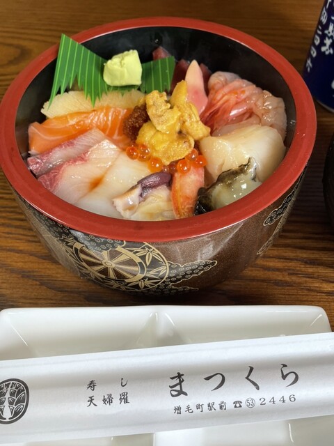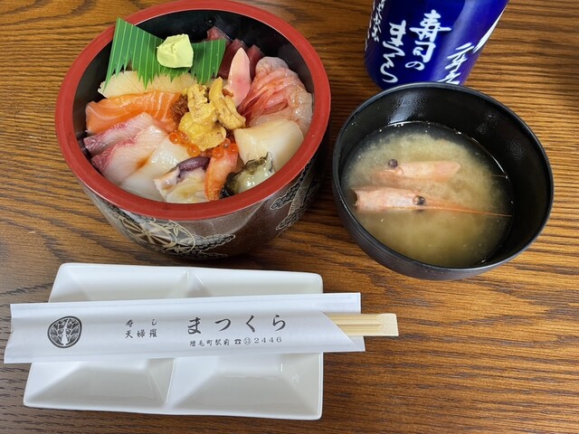 一年ぶりの増毛に行ってきた。月曜なのでどこも空いていたので人気店の「まつくら」に行くことにした。店の前の駐車場も余裕で駐車できた。店内は窓がないので薄暗くエアコン効きすぎて少し寒い。注文したのは上生チラ3300円で15分ほどで出食。どんぶりにはお刺身が重なるように盛られている。アワビがのっているのに... 詳細を見る