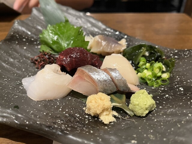 くじらづくし 刺し盛り 赤身、舌、はつ、鹿の子、うね 他店で食べたクジラより流石に旨い。ただハツと...