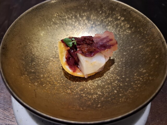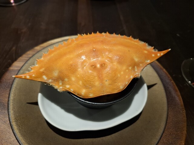 タラバガニと白菜は上に乗っかっている卵白の泡が素敵。器も良くわからない感じが良い。