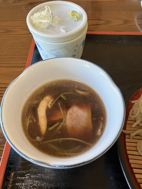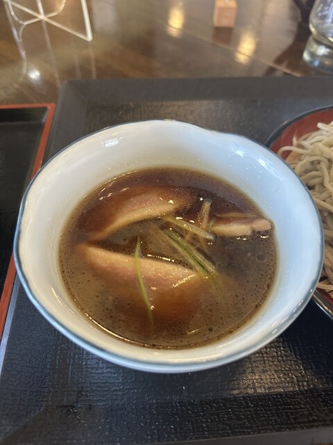 打ち立てそばにワサビをつけてもりそば用のつけ汁に食べると美味しく、さらに鴨つけ汁はとても美味しく、たまご天も濃厚な味...