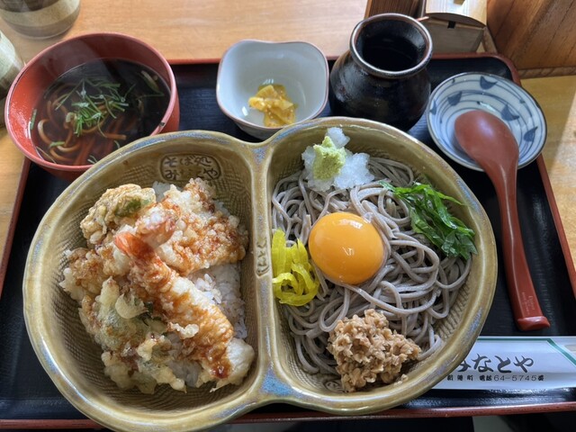 大体いつもアベック丼1350円を頼むのですが、本日は天丼と納豆そばのセットにしました。
