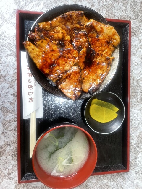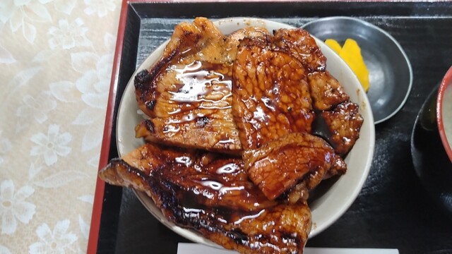 豚丼の大を注文。豚はかなりのボリュームでしたが分厚いながらも柔らかくてタレとよく絡みノンストップで食べ進めることができました。炭火の香ばしい香りがさらに食をすすめます。駐車場で待ってれば電話してくれる...