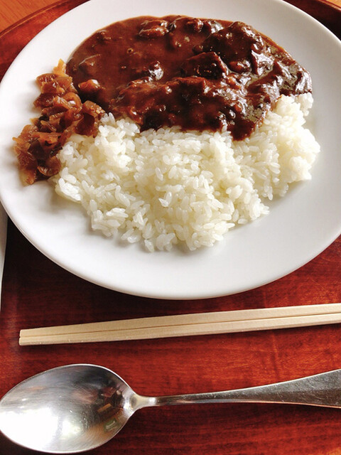 こちらも店の人のお薦めがあったので、お薦めのカレーとポロシリというシチューのような料理を注文。