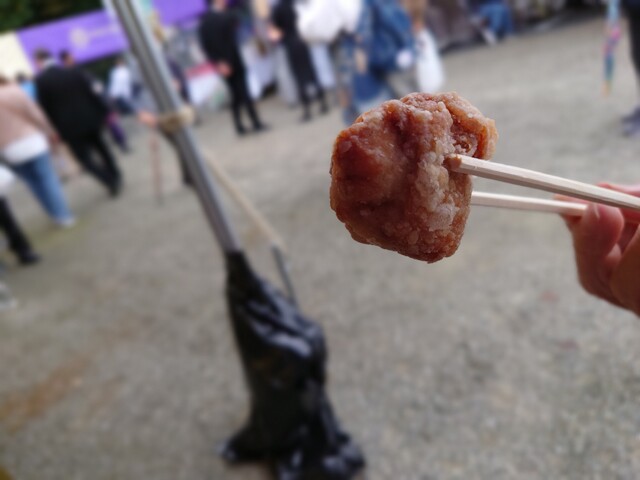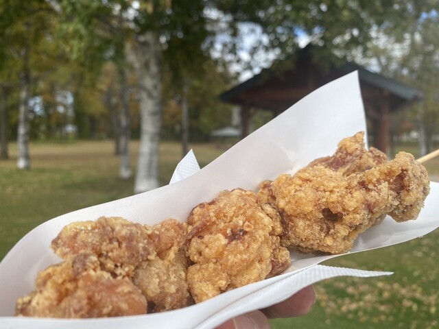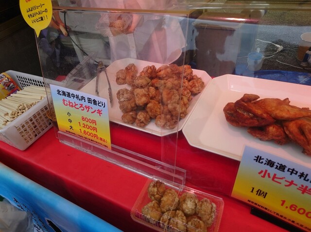 久しぶりの再会で、念願のビールで頂きます。未食の中札内田舎どり中ビナ半身揚げ1,101円も併せて購入します。道の駅のお店でもそうでしたが、催事でも人気らしく大行列でした。