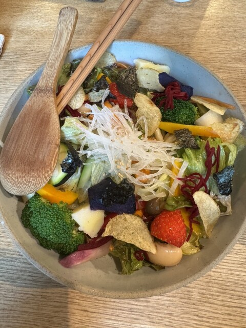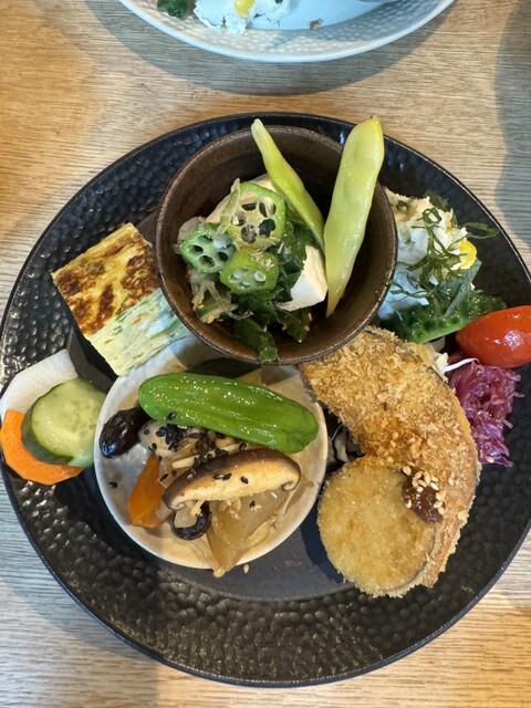 大好きなお店! またお邪魔しました。 私おすすめ! もちろんたくさんお野菜を使ったサラダ☝️ 今日はお友達が初めてだったので肉味噌のご飯にしました。 そして色々のってるお皿の中のお野菜のフライが推しです。 少し味が付いていてころもが薄くてサクッとしています。本当に美味しいです。 ... 詳細を見る