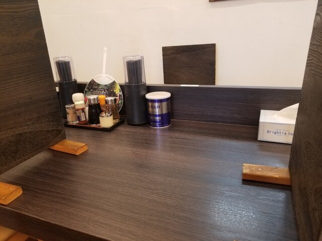 テーブルの食べた後の丼の片付けが後回しで、ややオーバーフロー気味。