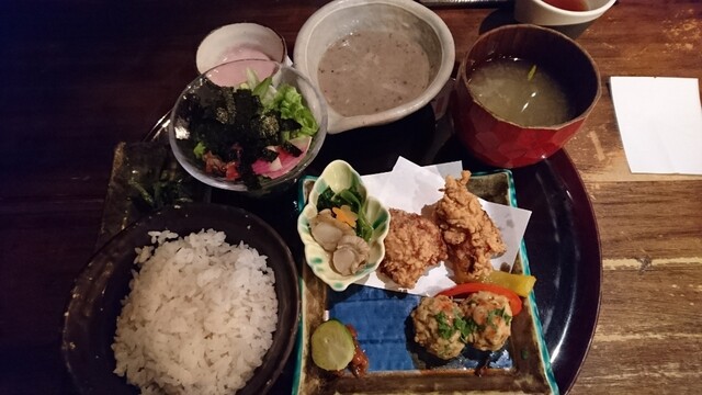 三ノ宮駅南、磯上公園の北にある、自然薯の和食店。 ランチは予約でいっぱい。予約せずに行けば1時間くらい待つことになる。運が悪ければ入れないこともある。 店内から唐揚げの匂いが漂ってくる。 2人で予約せずに来て、1時間ほど待って、カウンター席に案内された。(電話番号を伝え店外で待っても良... 続きを読む»
